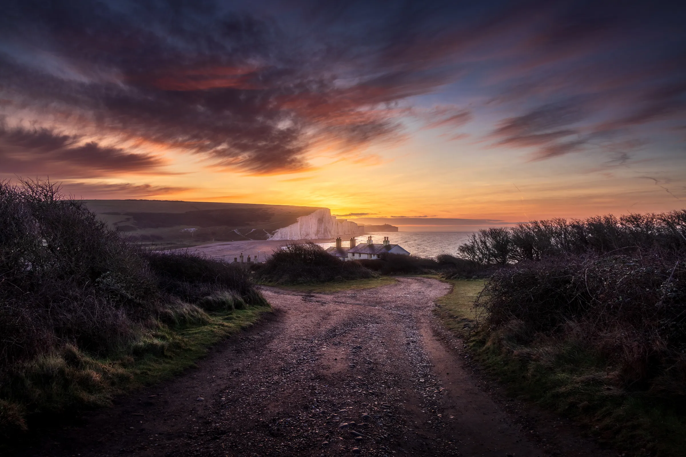 The Coastguard Cottages at Cuckmere Haven are one of the most photographed locations on the Sussex coast, and for good reason. These charming white cottages, set against the backdrop of the meandering River Cuckmere and the Seven Sisters cliffs, create a scene that feels quintessentially English. I'd wanted to capture them at sunrise for years, and this February morning finally provided the perfect opportunity.
