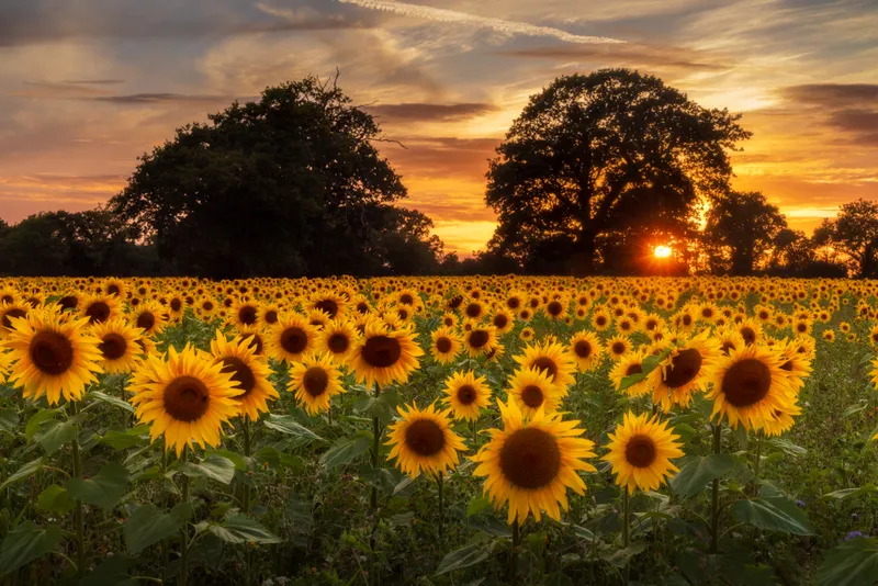 Fiery sunset over the ancient hillfort of Cissbury Ring.