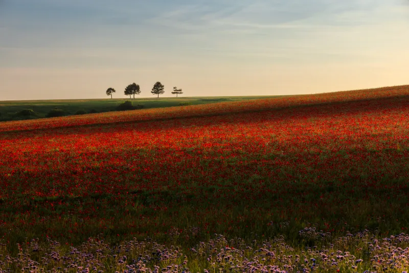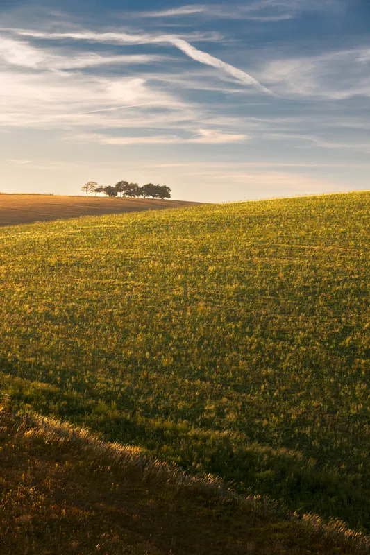 The rolling landscape of Devil's Dyke captured in soft golden evening light.