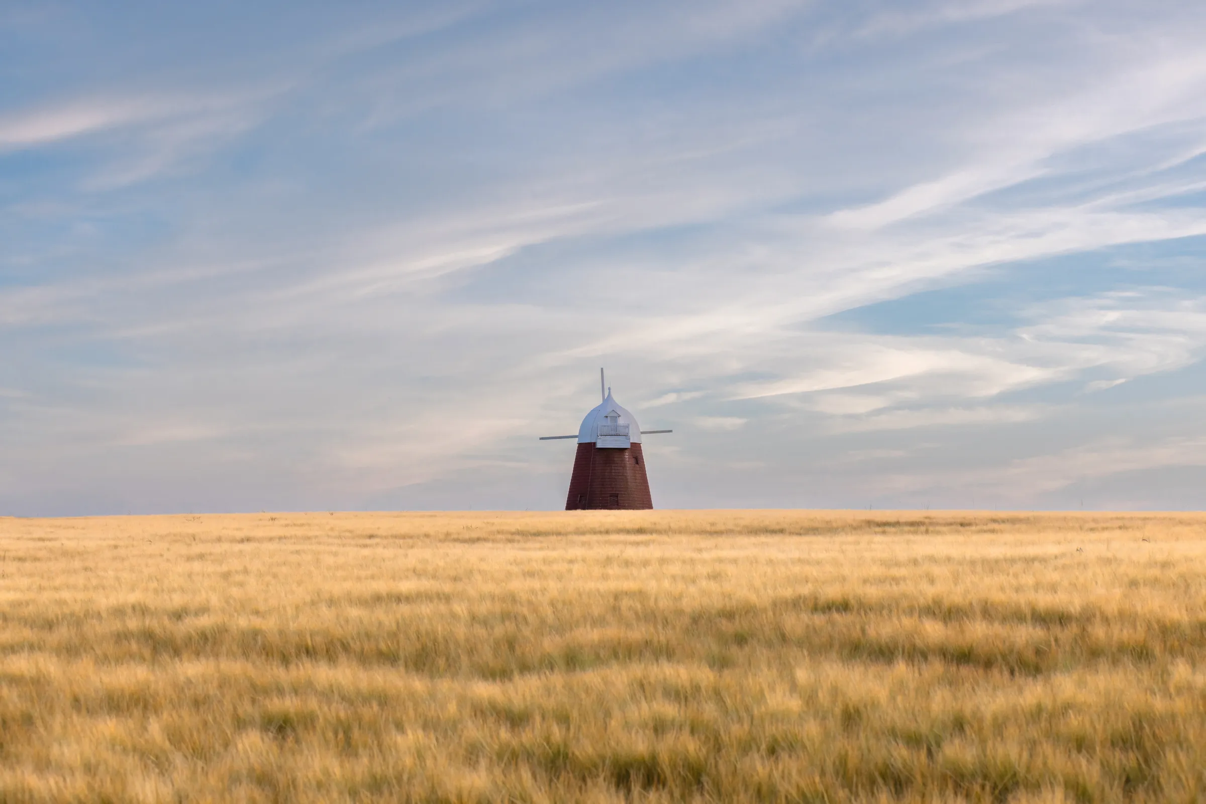 When you look at this photograph, I want you to feel that connection to agricultural heritage and the rhythm of the seasons—the golden crops ready for harvest, the historic windmill standing watch, and that beautiful Sussex evening light bringing it all together in one frame.