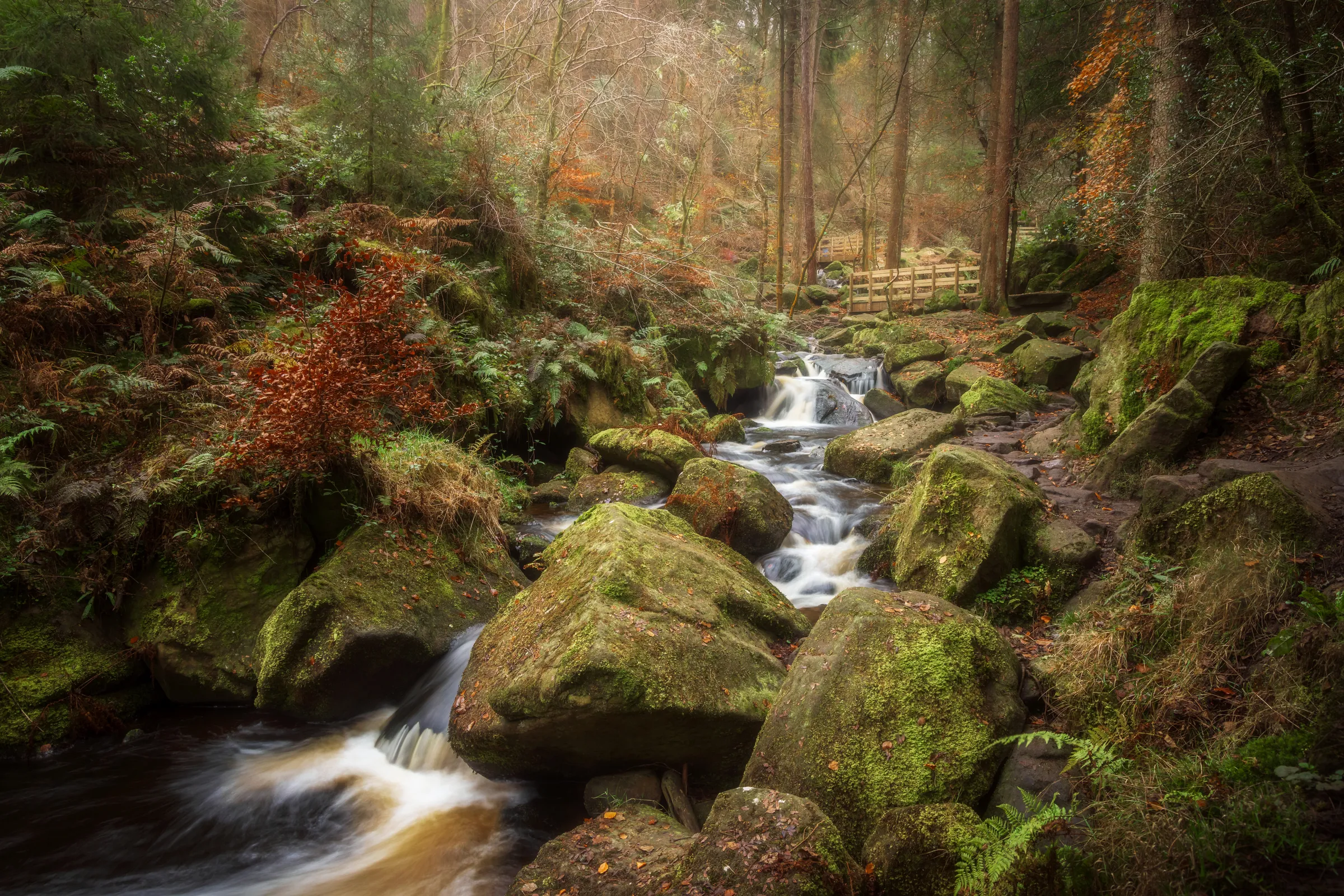 I'd been exploring Wyming Brook all morning, photographing different sections as I made my way along the stream, and I knew from the moment I passed this spot that I'd be coming back to it. The way the brook gently descends through this landscape of moss-clad boulders and rich autumn hues—it was exactly the kind of scene I'd been hoping to find.